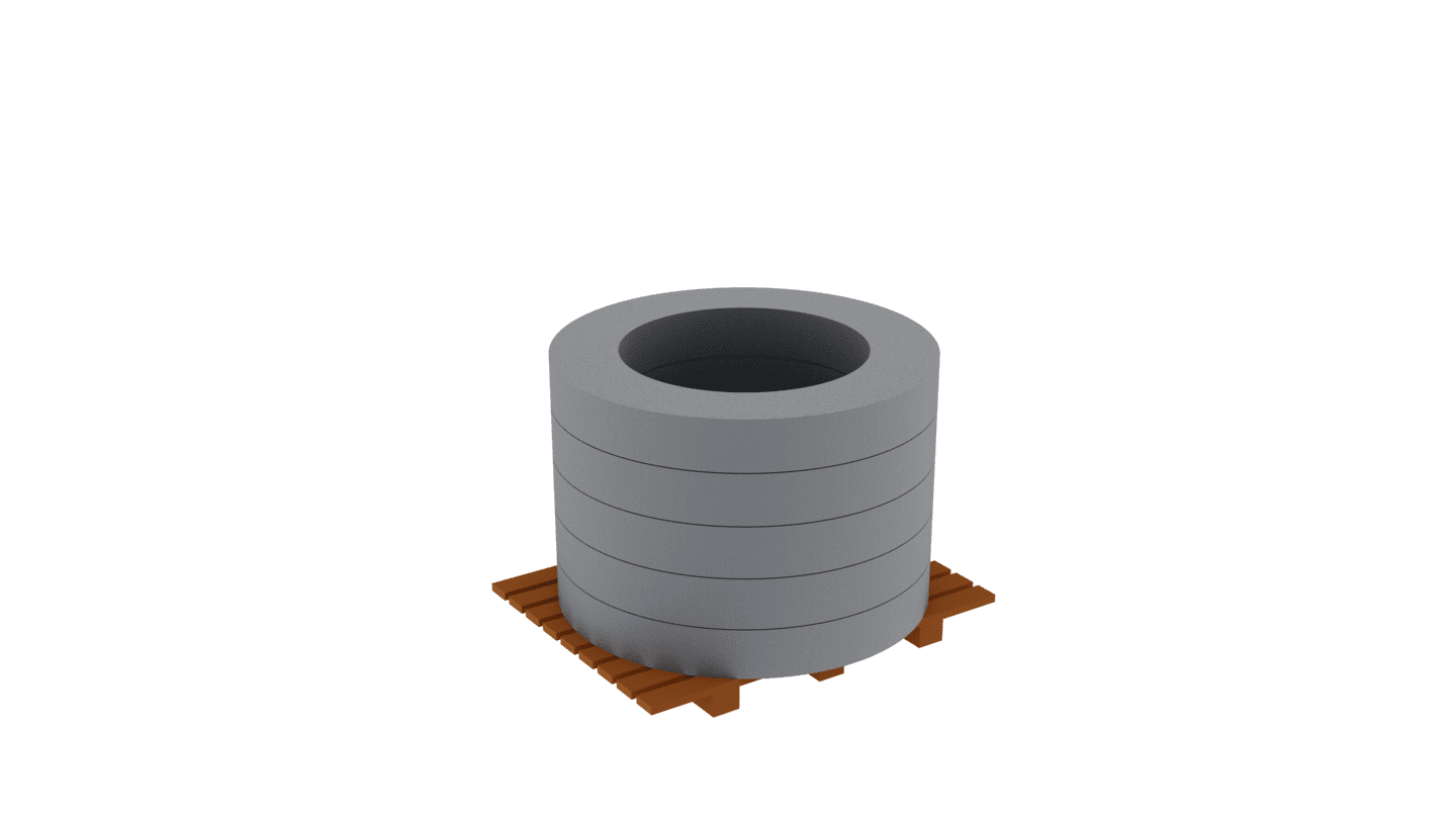 | Oznaczenie / cm | ∅ wewnętrzna (mm) | ∅ zewnętrzna (mm) | Wysokość (mm) | Ilość na palecie | Masa palety (kg) |